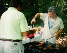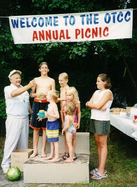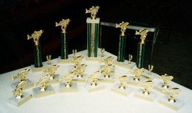 An afternoon thundershower held off long enough for about 70 people to enjoy the Annual Picnic on Sunday, July 30, 2000. The highlight of the picnic was the awarding of trophies to the entrants of the Third Annual Youth Fishing Tourney. Click here for a photo of all the trophy winners. The top awards were: