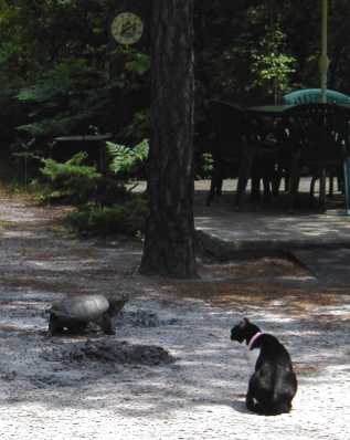 tenant's cat, Oreo, just sitting watching this big turtle. I called my
